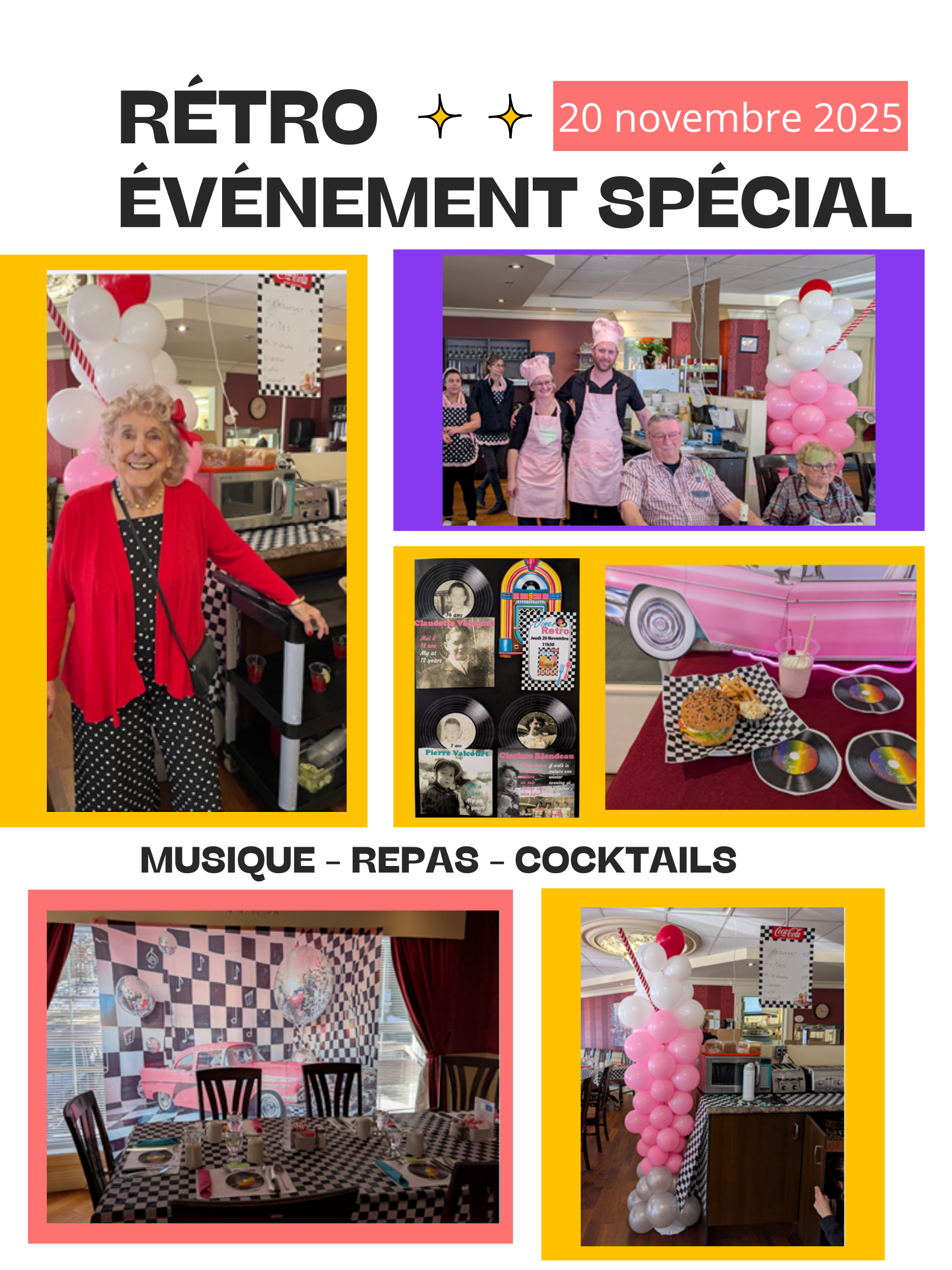 Le 20 novembre dernier, un événement spécial rétro a été organisé par une de nos employée. Les résidents devaient remettre une photo de leur jeunes temps afin d’apposer